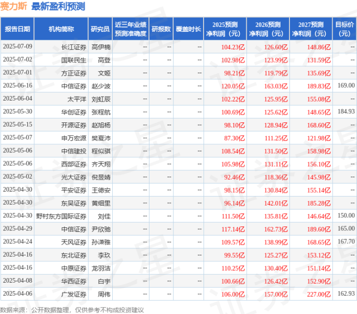 最新盈利预测明细如下: